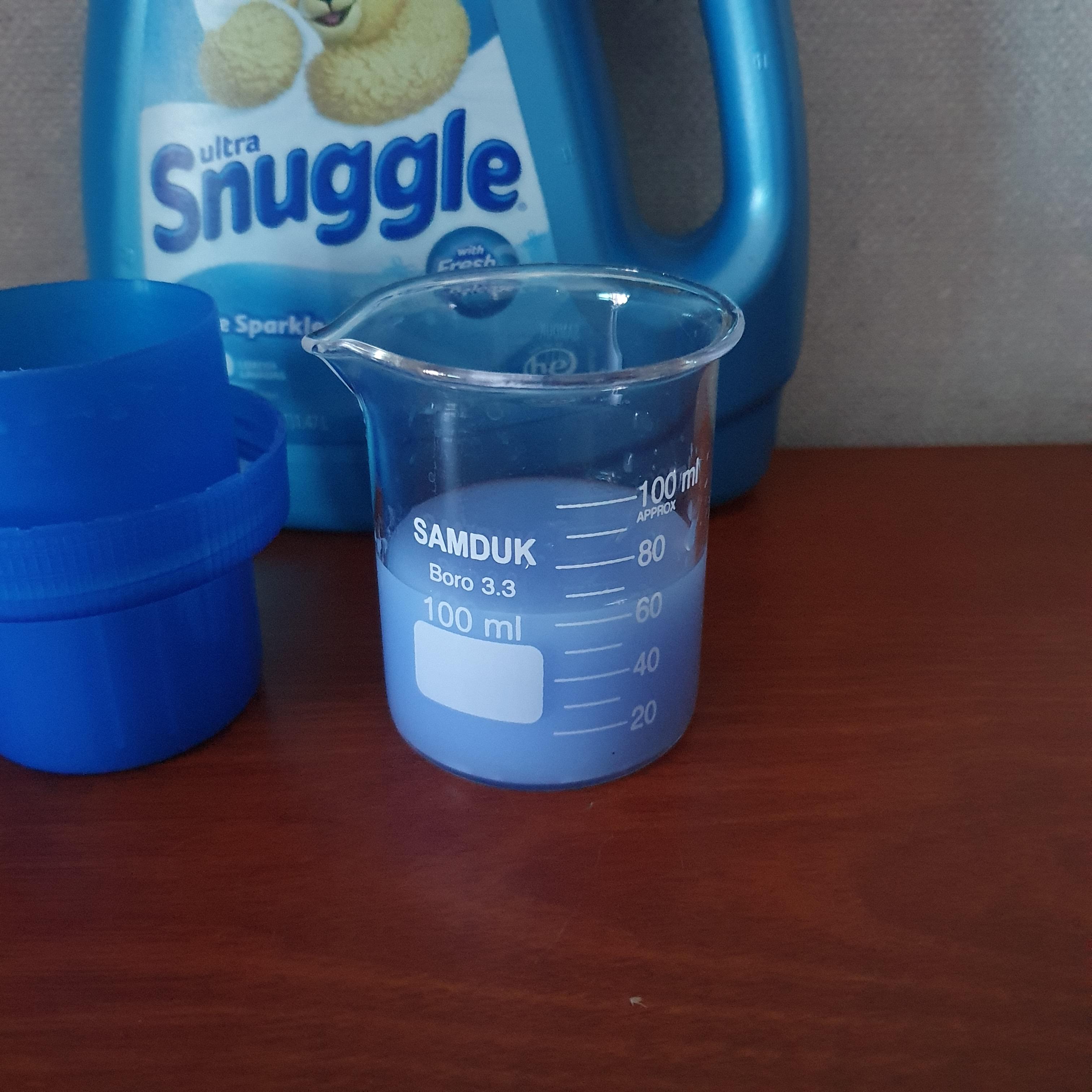 사진만 봐도 어마어마 합니다.. 오른쪽 뚜껑에 부은 유연제를 비커에 옮겨서 측정하면 저정도 됩니다.
