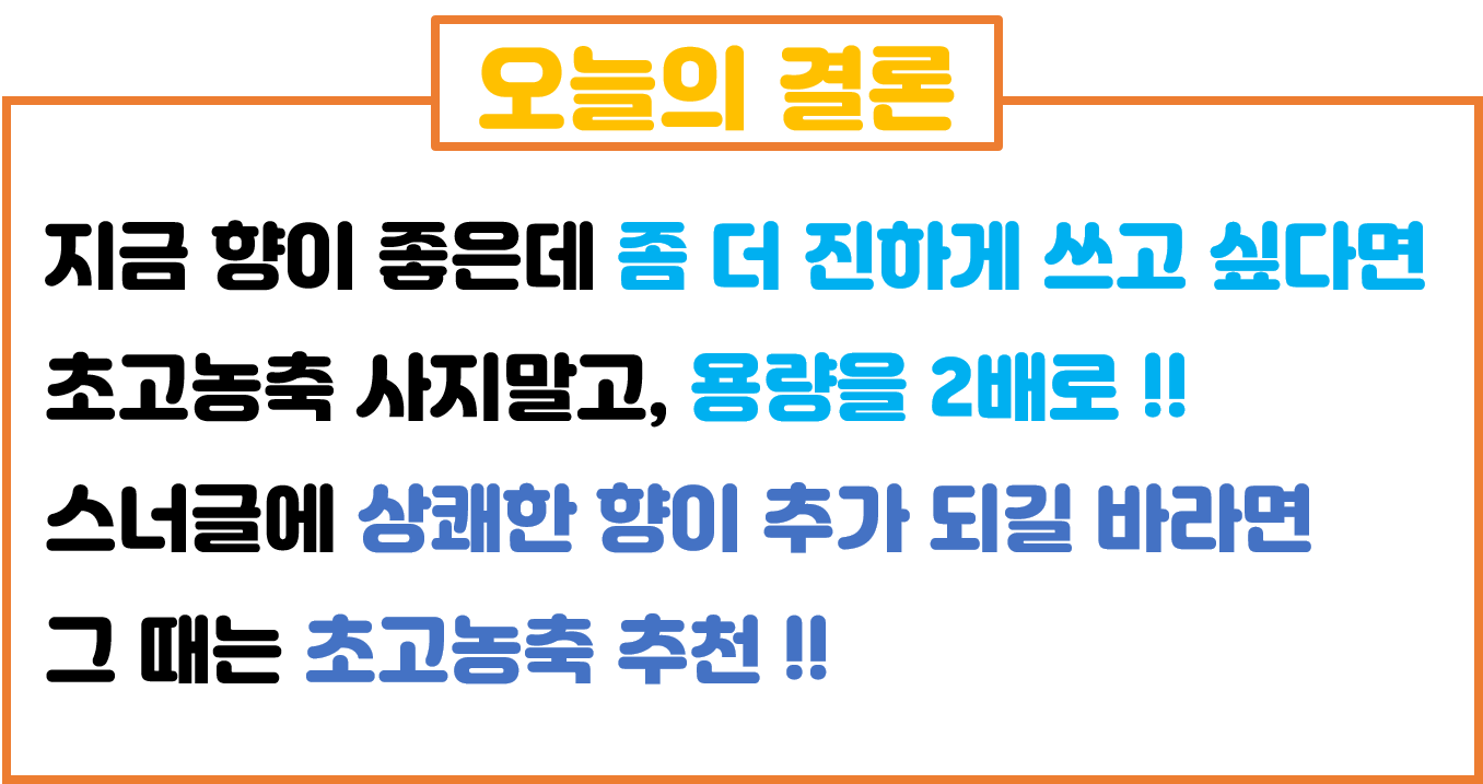 향기가 조금 더 풍부해져서 향기 파워는 초고농축과 비슷해졋습니다.