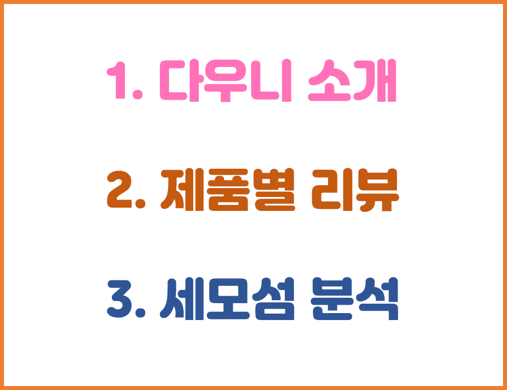 오늘은 다우니 보타니스 시리즈를 모아서 비교 분석 해보겠습니다 !!