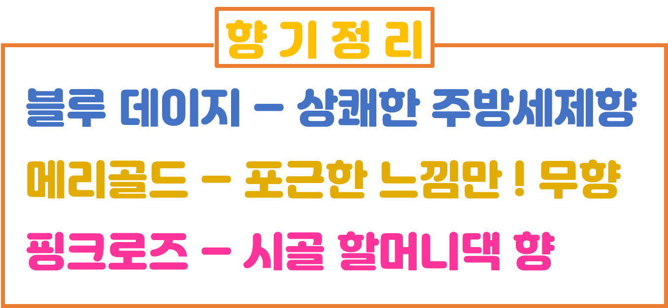 제품별로 향기, 느낀점 소개하는 시간입니다.