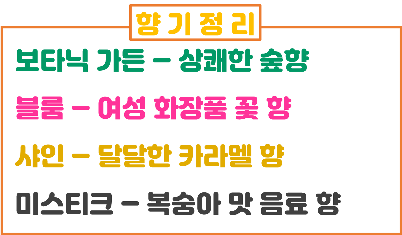 제품별로 향기, 느낀점 소개하는 시간입니다.