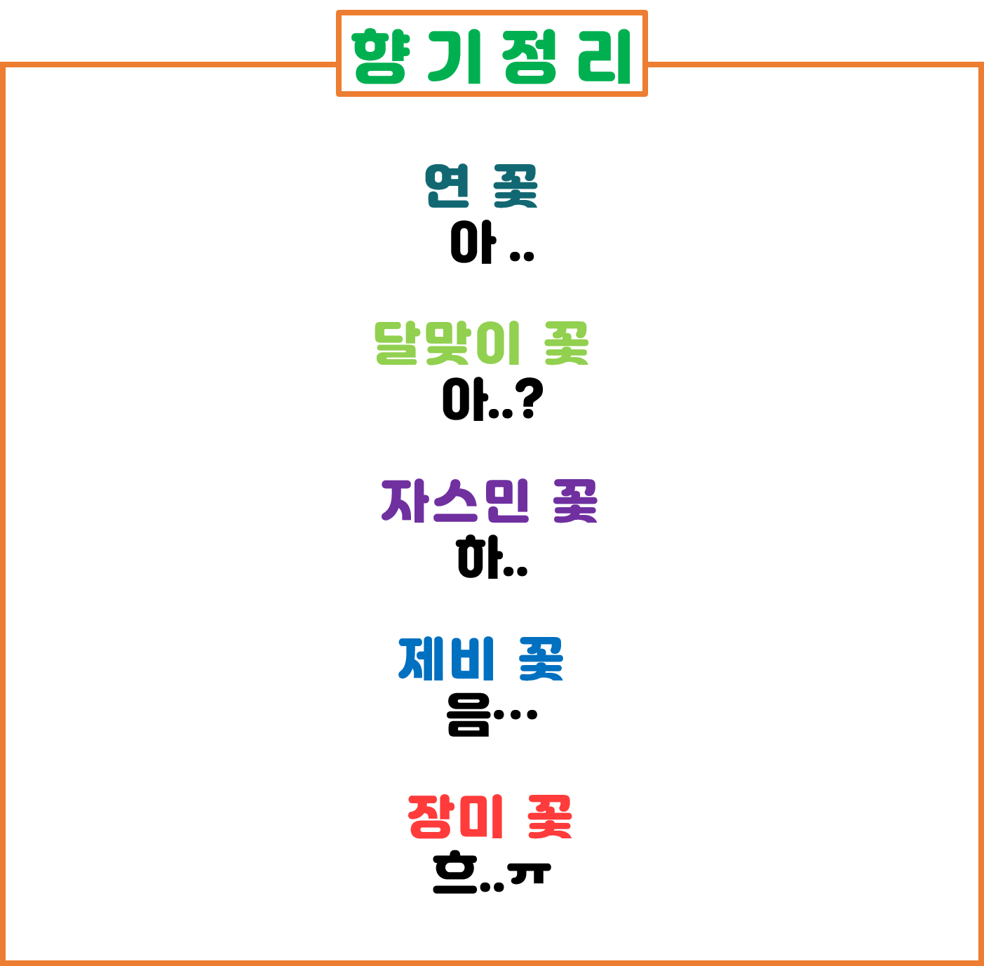 5cm 사거리를 가진 향기 파워. 위에 달맞이 꽃 처럼 1초 정도 맡아지는 매우매우 은은한 향기 입니다. 1초는 옷에 코를 갖다 댔을 때 기준 입니다.