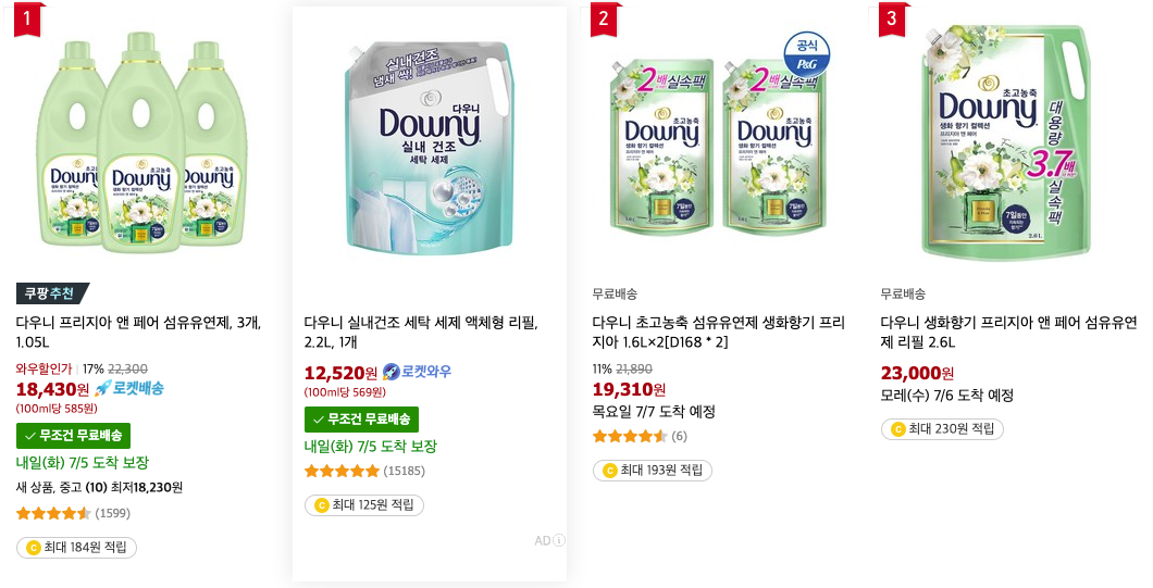 가격은 전형적인 다우니 1L 라인 가격입니다.