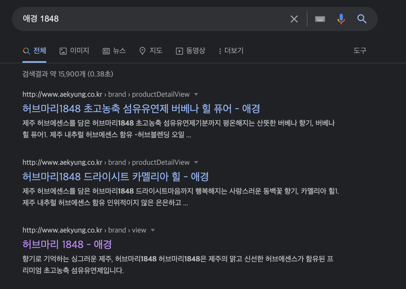 애경이라고만 치면 브랜드 전체 홈으로 들어가져서 찾기 귀찮아져요.
