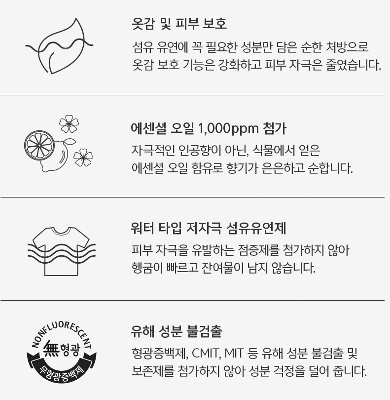 굳이 추천하자면 섬유 유연제와 구연산의 기능을 한 번에 쓰고싶은 분들에게 추천드립니다