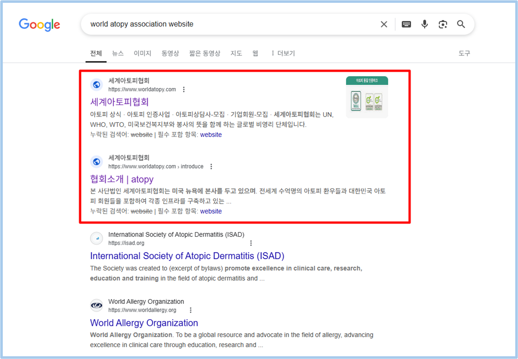 세계 아토피 협회(world atopy association)를 구글에서 검색해보았습니다.