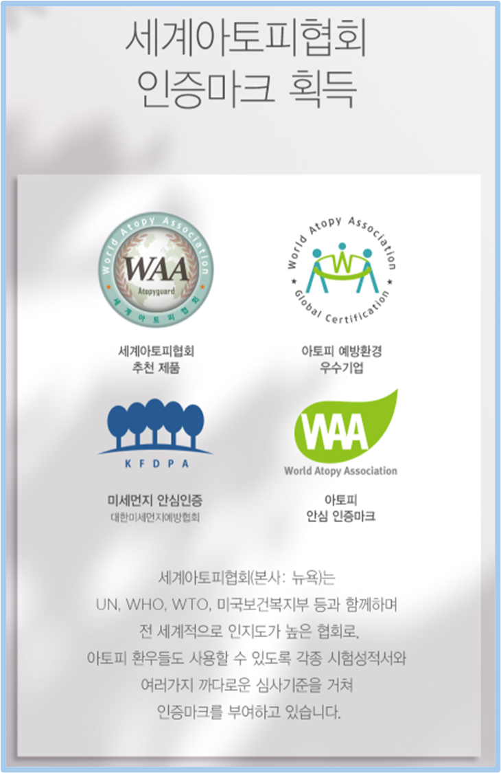 세계 아토피 협회에서 인증 마크를 부여 받은 제품