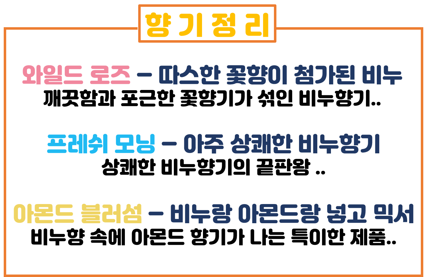 1. 깨끗하고 세련된 비누 향기인데, 은근한 꽃 향기 까지 !!
