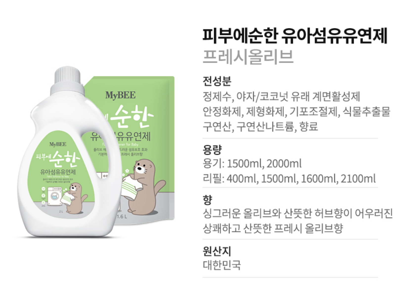 아벤트코리아에서 판매하고있는 마이비 유아 섬유 유연제 입니다.