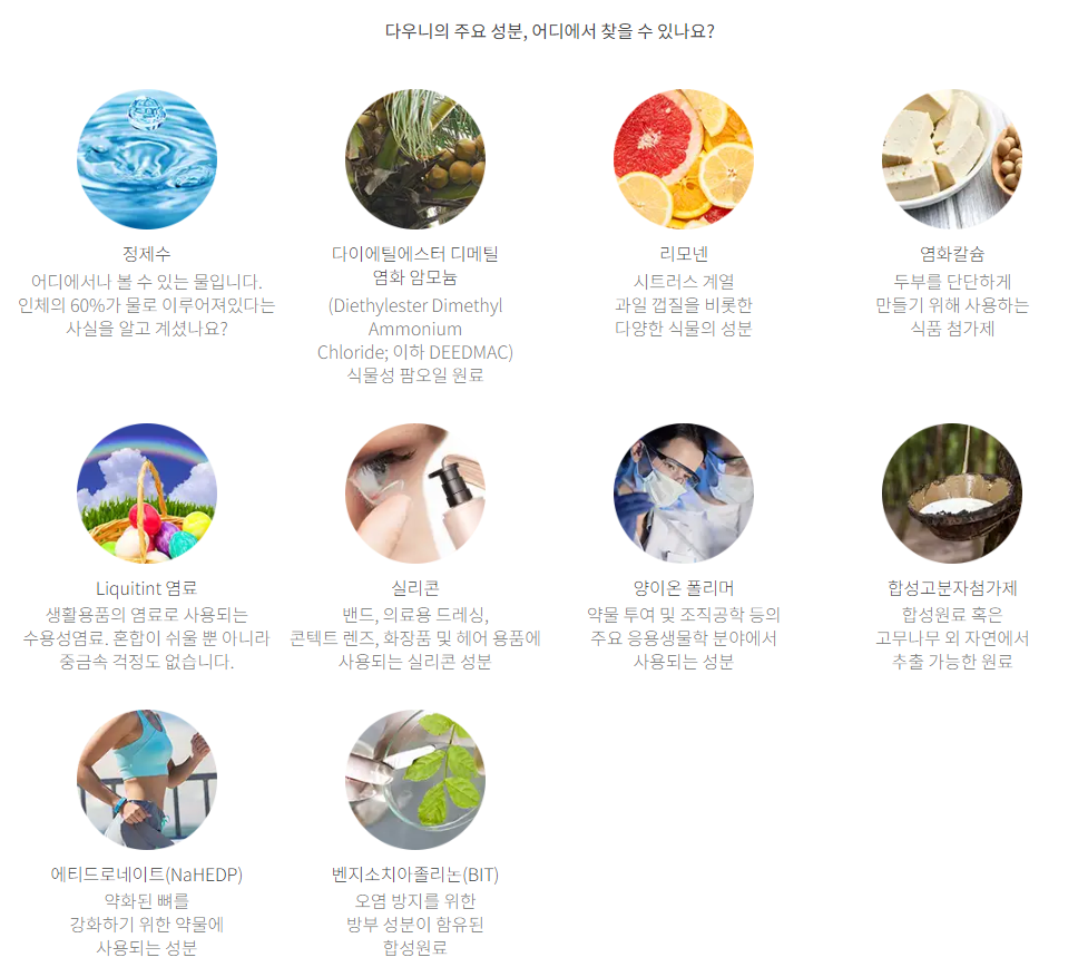 다우니는 이렇게 한국지사 홈페이지에도 성분 설명이 많이 있어요.
