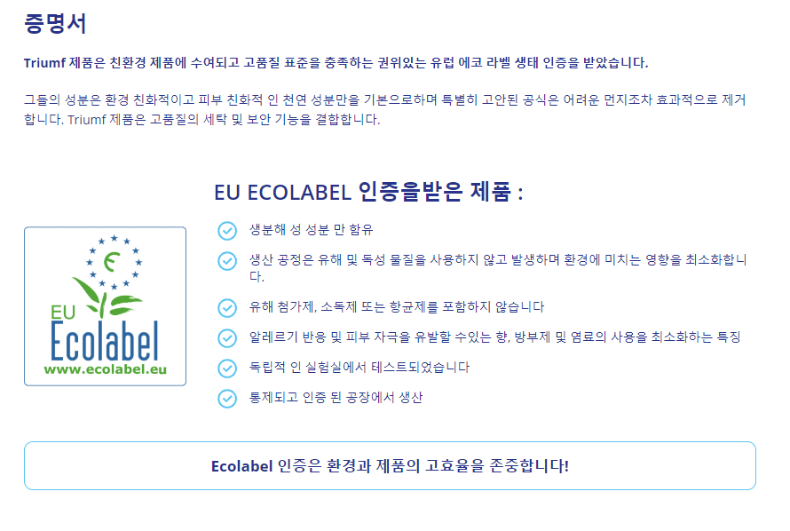 여기서 말할 수 있는 결론은, 트리움프 섬유 유연제 "확실히 인증되고 안전한 제품이다" 입니다.